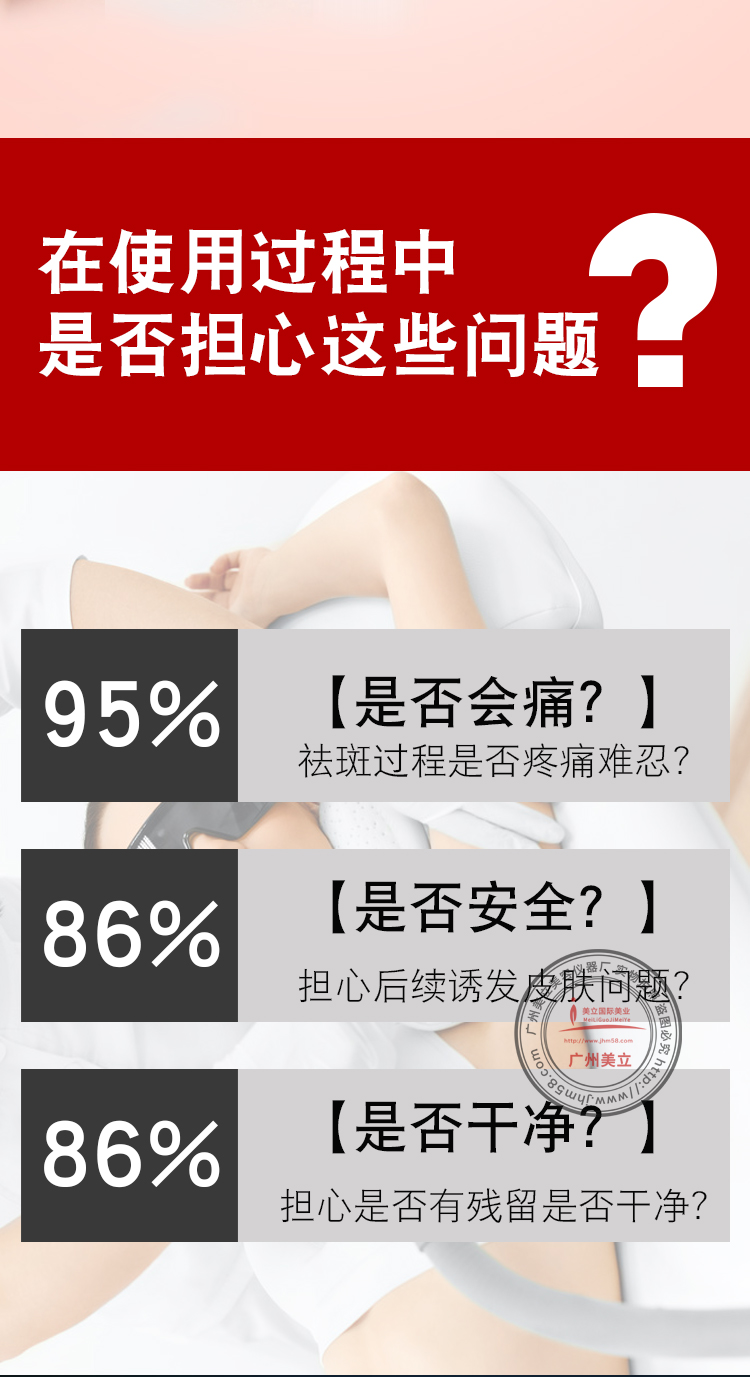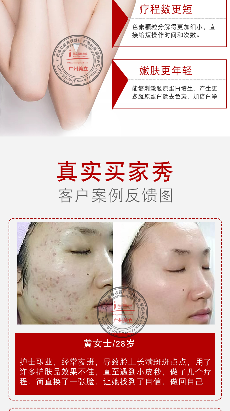02 能量在更短時間內(nèi)瞬間釋放出來,色素細(xì)胞自然被擊得更細(xì)碎,將熱損傷降到最低,也就是不會傷正常皮膚